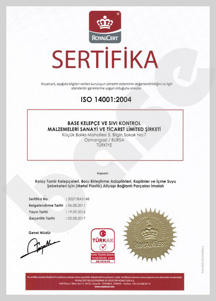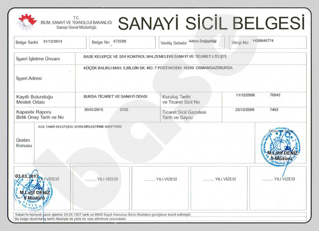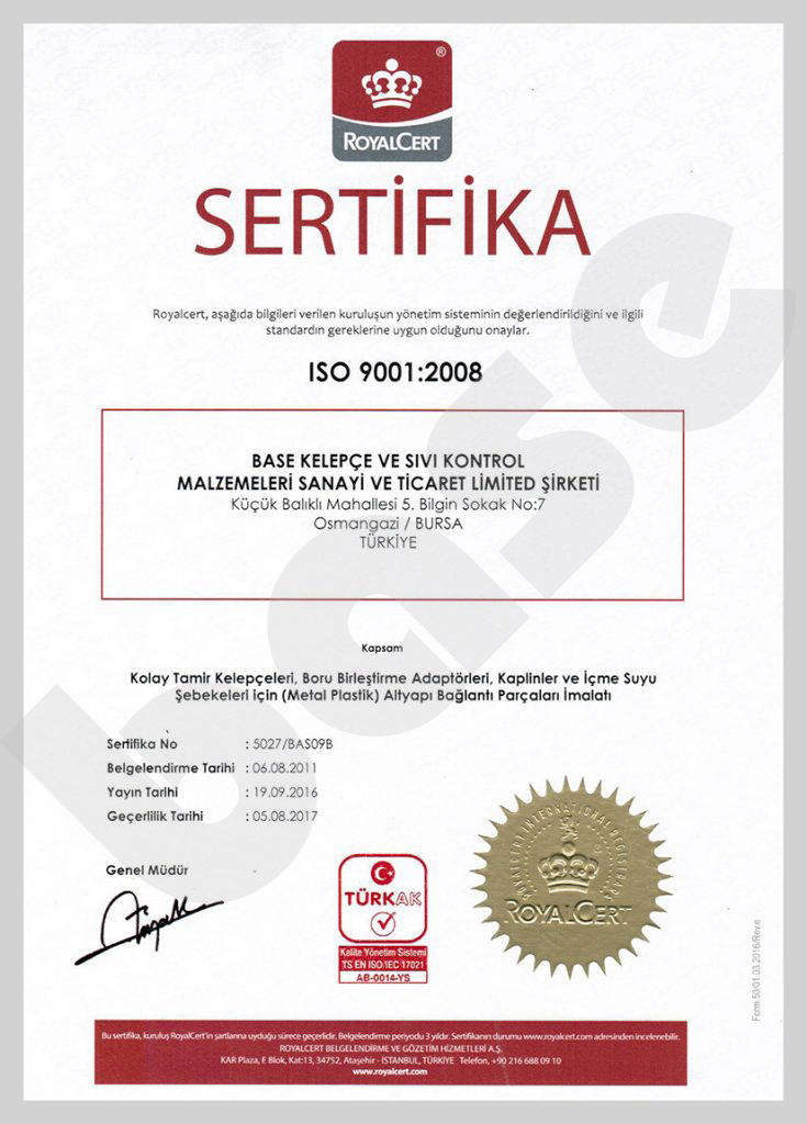 2005 tarihinde Base Makine olarak faaliyet gösteren şirketimiz, 2011 yılında Base Alt Yapı ve Sulama Ekipmanları San. Tic. Ltd. Şti. adına özellikle tamir kelepçesi üretiminde, bütün belediyelerin alt yapı ve yedek malzemelerini temin etmek amacı ile 1250 m2 kapalı alanda faaliyete geçmiştir.
